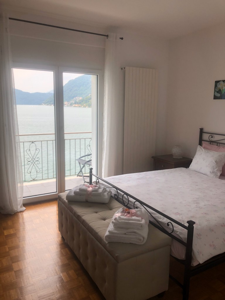 Nous avions réservé un Airbnb de folie avec vue sur le lac (pour 6 lien ici) à Morcotte près de la frontière italienne.
